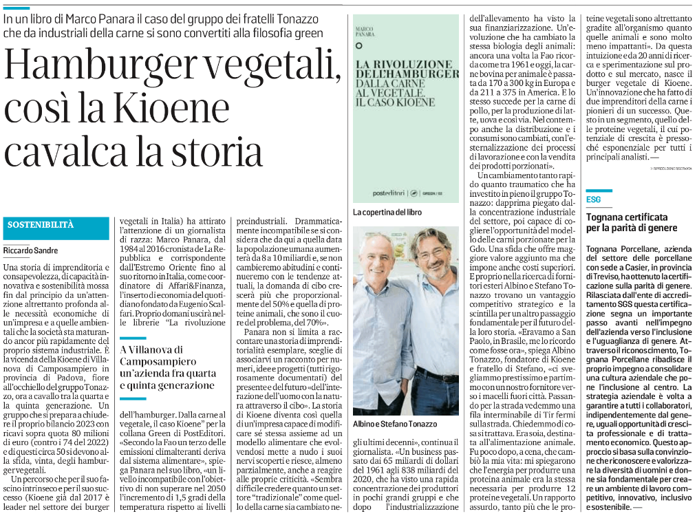 Hamburger vegetali, così la Kioene cavalca la storiaRassegna stampa In un libro di Marco Panara il caso del gruppo dei fratelli Tonazzo che da industriali della carne si sono convertiti alla filosofia green. di Marco Panara